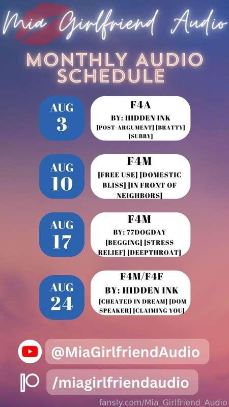 August Schedule 😉 Edited to better reflect 8/3 a